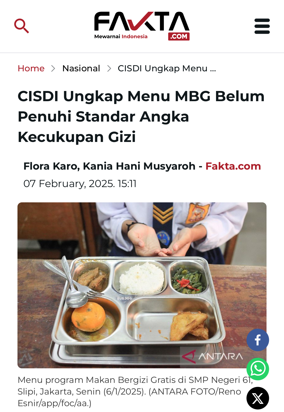 FAKTA.COM, Jakarta – Program andalan Presiden Prabowo Subianto, Makan Bergizi Gratis (MBG) yang sudah berjalan ini ternyata masih menghadapi sejumlah masalah. Center for Indonesia’s Strategic Development Initiatives (CISDI) dalam kajiannya mencatat bahwa menu makanan dalam program ini belum seluruhnya memenuhi standar Angka Kecukupan Gizi (AKG).